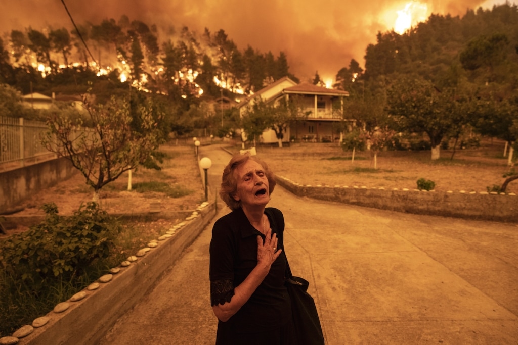 "Feu de forêt sur l'île d'Evia" © Konstantinos Tsakalidis, pour Bloomberg News. Vainqueur, Europe, simple. -