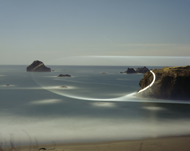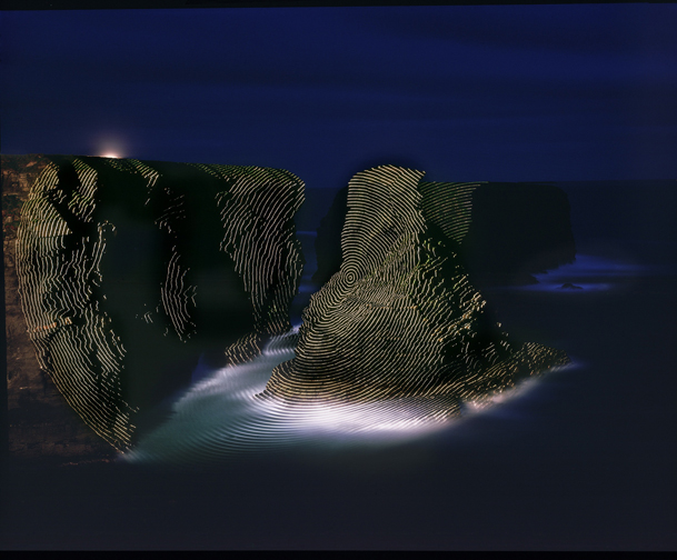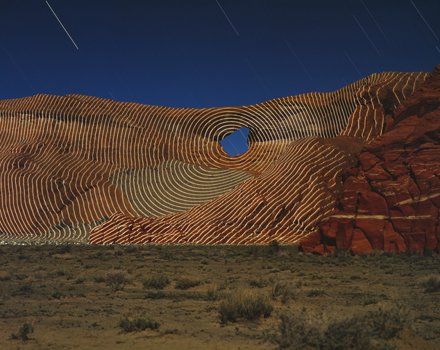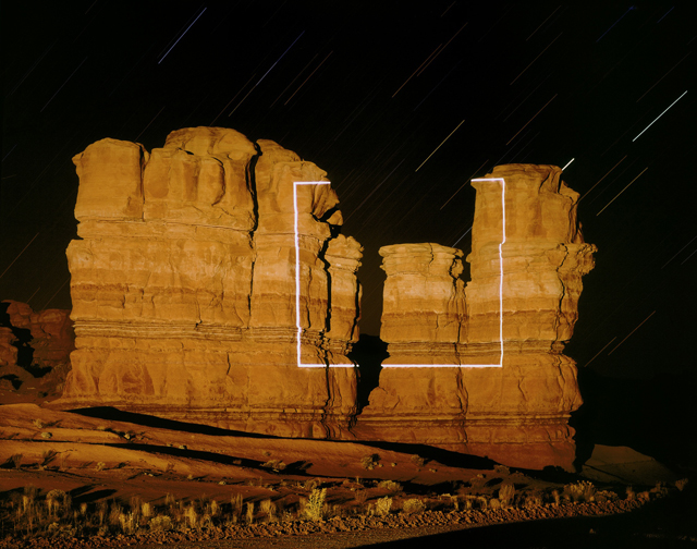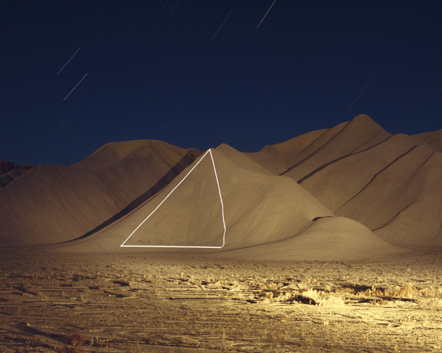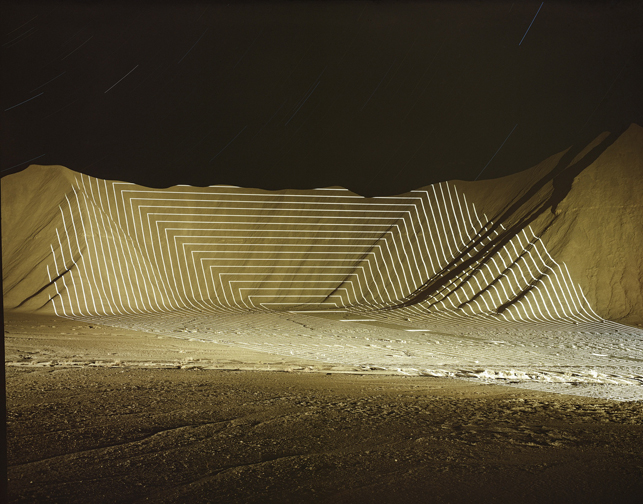 Durant les années 90, il s’est ainsi attelé à un un grand chantier : projeter des formes géométriques de très grande taille sur des paysages naturels. Utilisant un projecteur à 400 m de distance, il produit des poses longues de nuit utilisant la lumière naturelle de la Lune ou celle de puissants projecteurs. Le résultat est impressionnant.