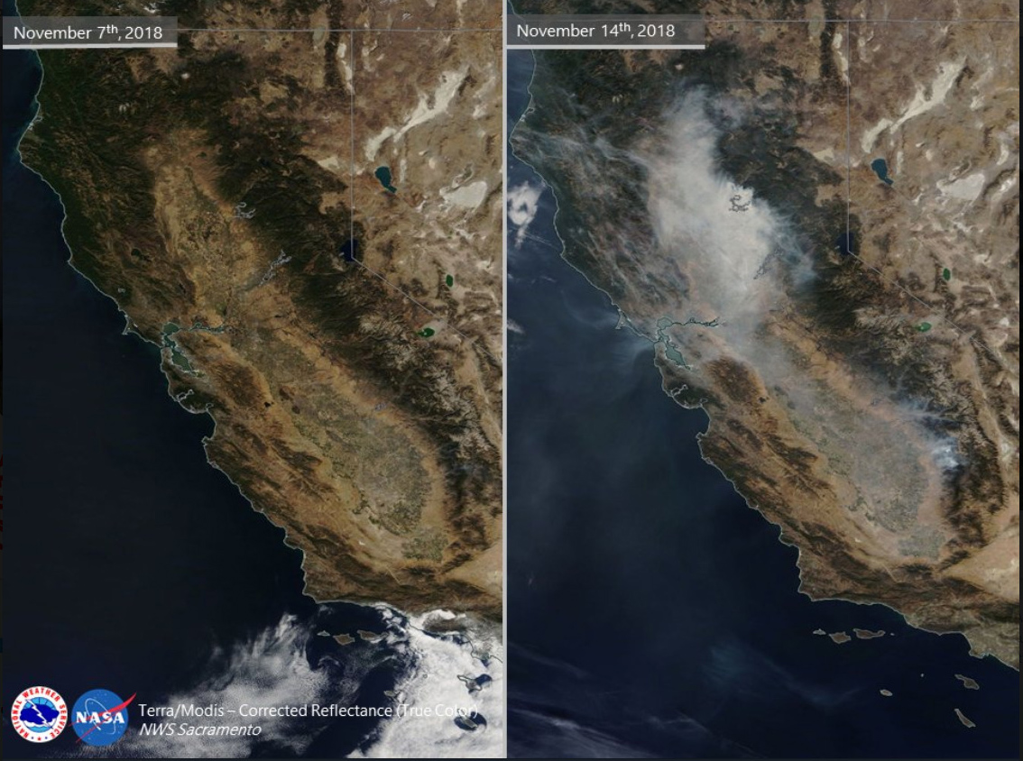 Les incendies font rages dans le nord et le sud de la Californie. La Nasa a communiqué des images des territoires brûlés vus du ciel.