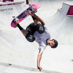 « Je me suis retrouvé sur le terrain de jeu lors d’un jour de repos au skate park, alors que Tony Hawk faisait une démonstration de ce sport présent aux Jeux pour la première fois. Photographier une légende de si près, c’est cool, non ? » s’amuse-t-il.
