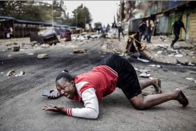 Parmi les clichés les plus marquants, celui du lauréat du prix de la ville de Perpignan Rémi Ochlik 2018, Luis Tato, qui retrace en un reportage puissant les émeutes éclatées suite à l’annonce des résultats des élections au Kenya en 2017. Dans cette photographie à la justesse laissant bouche bée, il capture le désespoir des électeurs de l’opposition suite à l’exclusion de l’élection de Raila Odinga de manière suspecte.