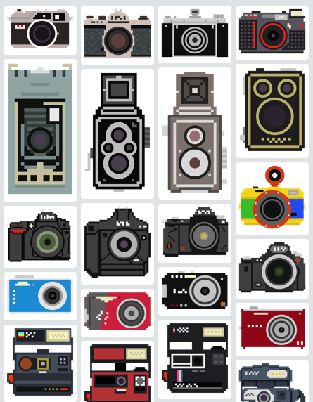 Des compacts aux reflex en passant par des Polaroïds, Lomo, grands blancs, flashes, vous aurez de quoi décorer votre blog, portfolio, ou changer votre avatar sur les divers réseaux sociaux et photos en ce début de semaine !