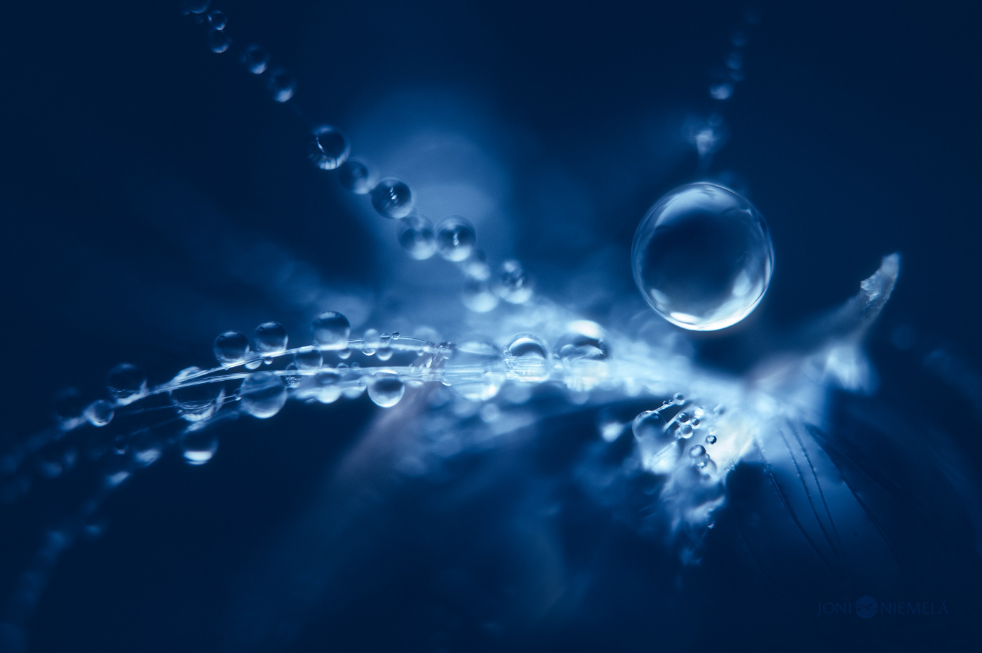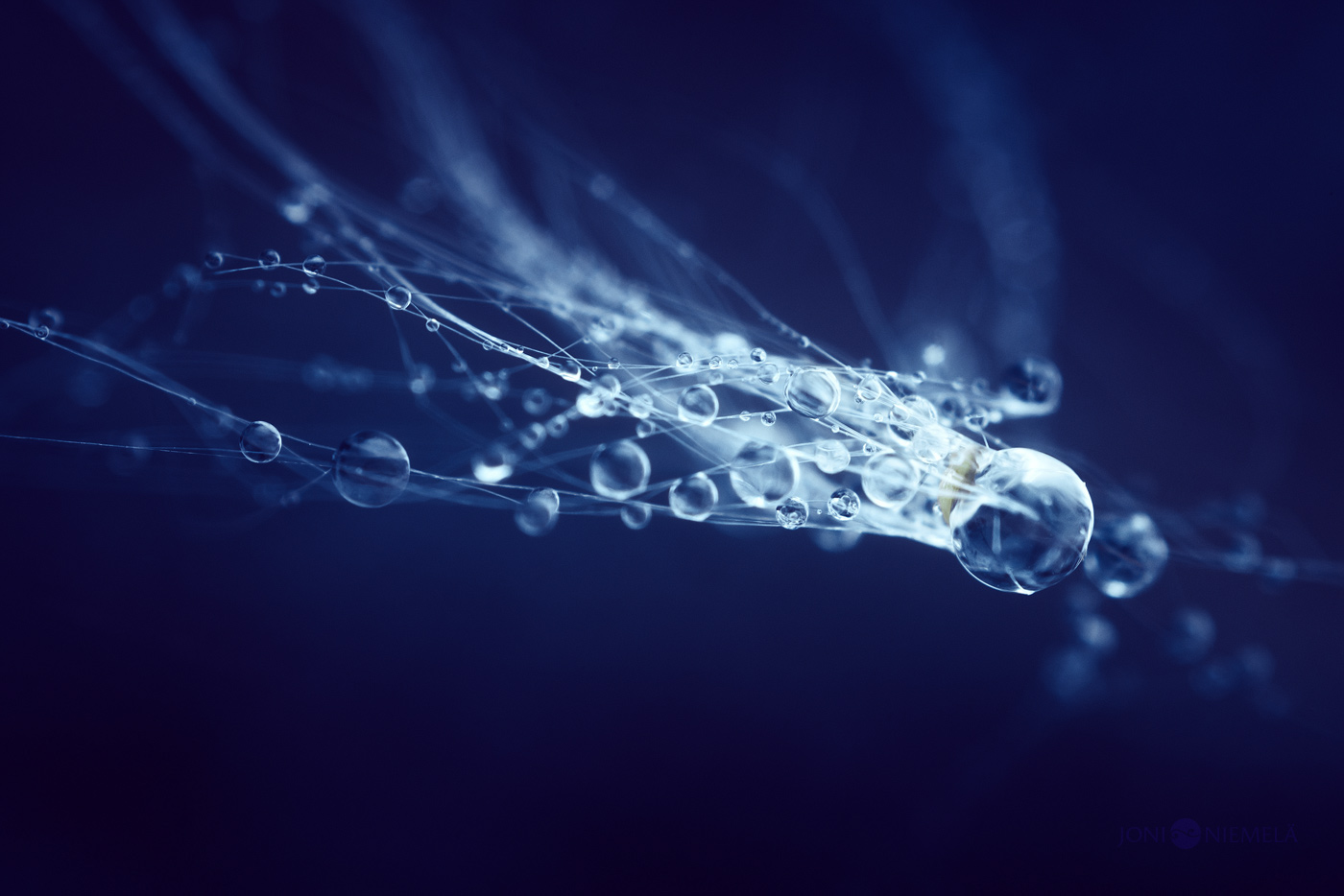 Après la Voie lactée au travers d’un radiotélescope de douze mètres concentrons nous sur l’infiniment petit avec les clichés de Joni Niemelä qui mettent en images les gouttes de pluie et de rosée à la façon de micro galaxies.