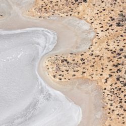 La photographe entend nous offrir un point de vue inédit sur notre planète. C’est grâce à des hélicoptères et des avions qu’elle peut survoler ces lieux reculés et les photographier d’en haut. Son projet Salt and Sky consiste en des photographies aériennes réalisées dans le Shark Bay Salt, en Australie occidentale, un lieu protégé par l’UNESCO. Des paysages formés et créés par l’intervention humaine sont transformés en poésie visuelle, comme des toiles pouvant ressembler à une étude sur la couleur et la texture en peinture.