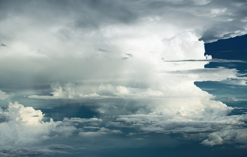 Rüdiger Nehmzow se lance dans de véritables expéditions et part à 6000 mètres d’altitude pour photographier les cieux depuis la porte ouverte de l’avion. Résultat? Des clichés hallucinants de paysages nébuleux, tour à tour apocalyptiques ou franchement oniriques. En tout cas, une vision de bout-du-monde qui fait rêver…