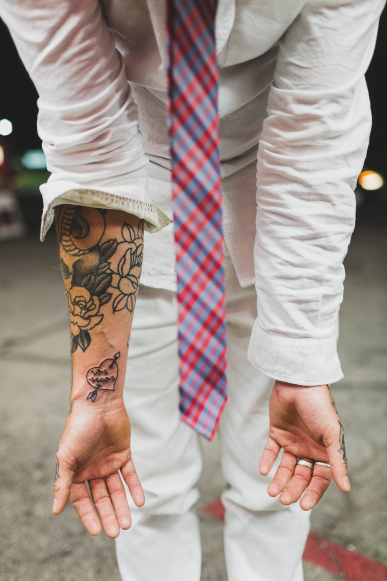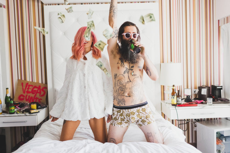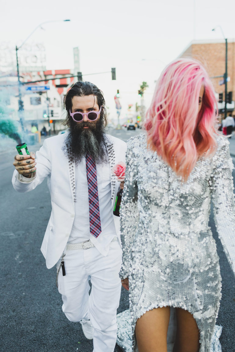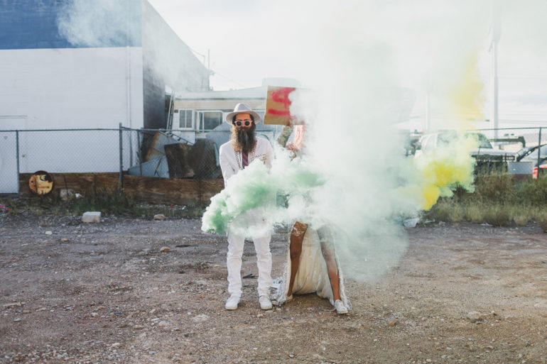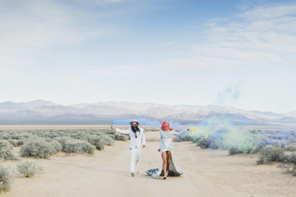 Si Ainsley Hutchence et Sebastien Fougere (du blog Stick and Stones Agency) avaient déjà été mariés, ils ont décidé de remettre le couvert de façon différente. Lors de leur « non-mariage » la photographe et amie du couple, Janneke Storm, les a accompagnés dans cette aventure, où les fumigènes, le désert, les tatouages et même le King ont pris part à la fête.