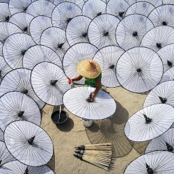 A woman makes traditional umbrellas at a factory in Mandalay, Myanmar. Aung ThuYa/AGORA images -