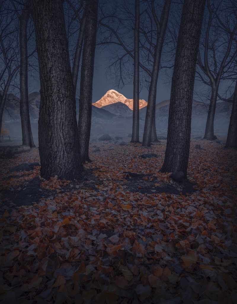 "Du crépuscule à la lumière" par Aytek Çetin. Montagne Kazbek, Géorgie. -
