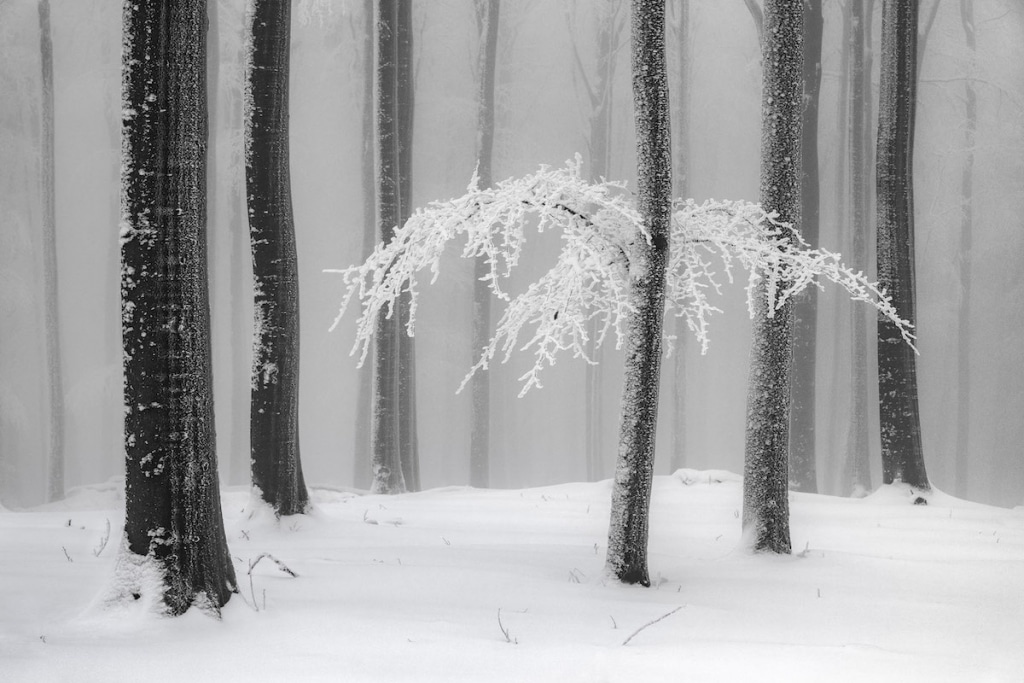 "Forêt d'hiver" par Heiner Machalett. Neunkircher Höhe, Hesse, Allemagne. The Monochrome Award, 2021. -