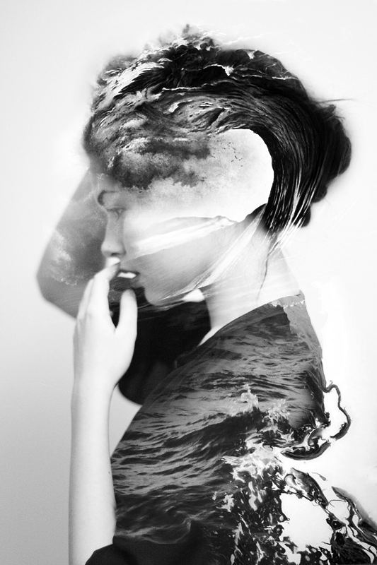 Si vous fouillez son site, vous découvrirez de nombreuses expérimentations. Nous nous sommes concentrées sur celles mêlant noir et blanc, portraits et nature. Cette dernière redessine une chevelure, une tenue, une attitude, dans un mariage harmonieux avec les portraits récoltés sur le net. Un plaisir.