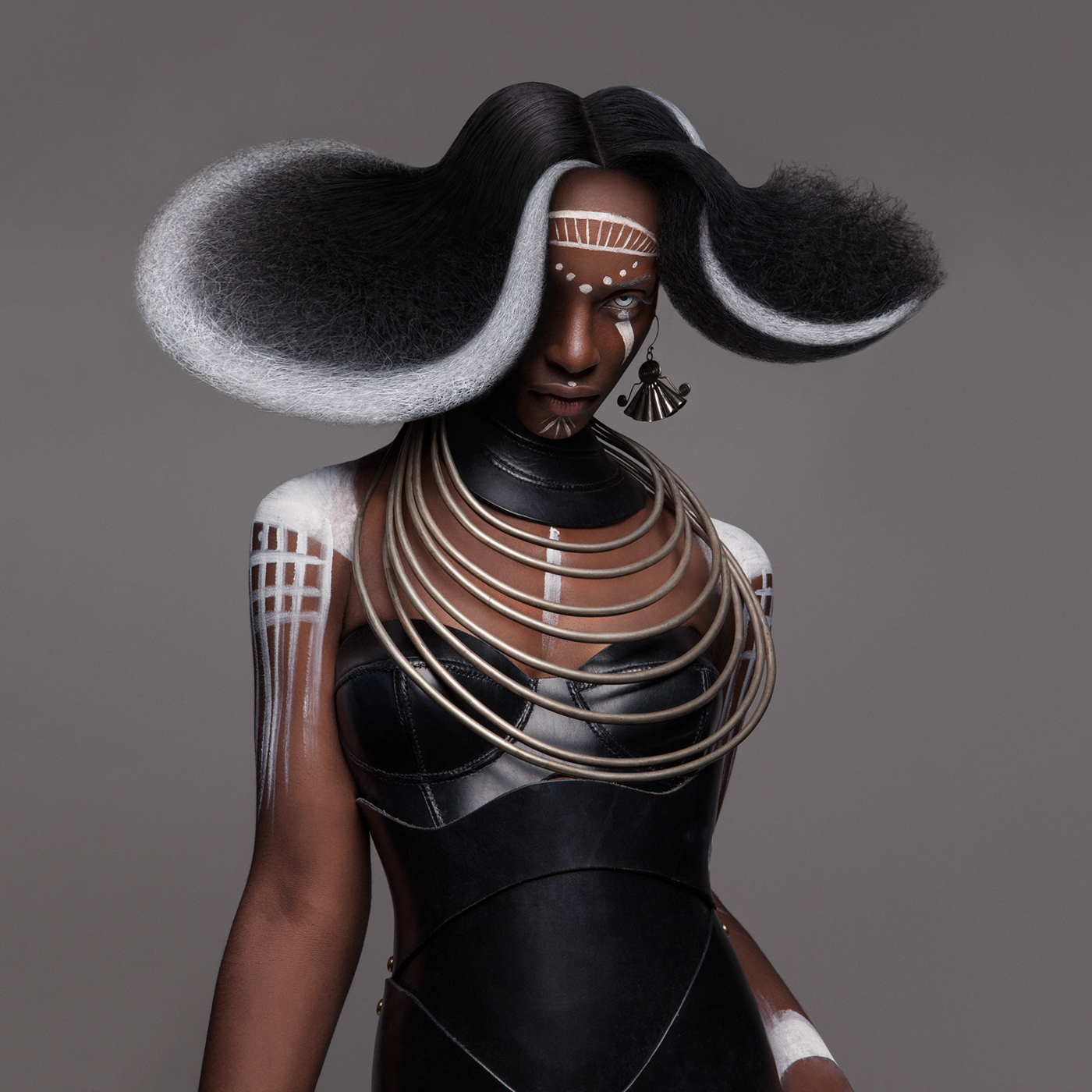 C’est en partant du modèle qu’il dresse le portrait d’un vrai mouvement, ou d’une tendance, comme l’afro-futurisme. Loin de jouer avec les clichés, le photographe et sa styliste ré-interprètent des codes souvent attribués à la beauté afro en les dépassant : ainsi les univers tribaux s’empreignent de force, de revendication et d’une touche glamour sans artifices.