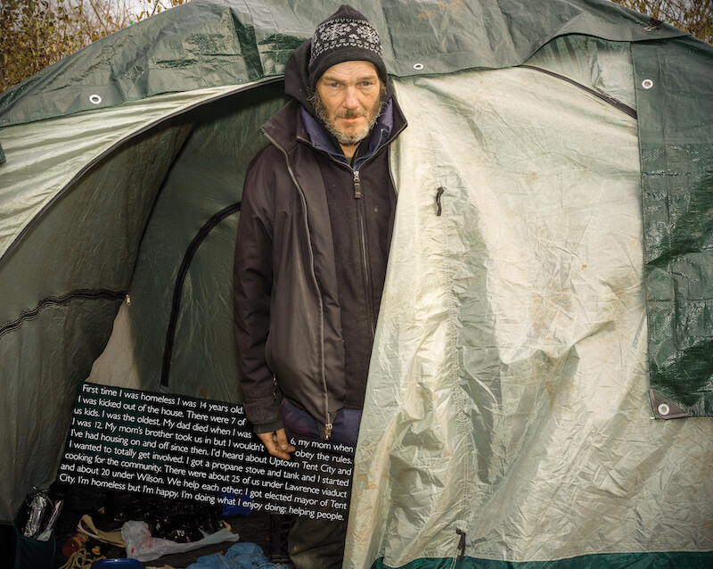 « J’espère que mes images photo/texte pourront contribuer à la conversation publique sur les causes et les solutions possibles à certaines des questions difficiles entourant le sans-abrisme et à une meilleure compréhension de cette communauté importante mais vulnérable », explique le photographe.