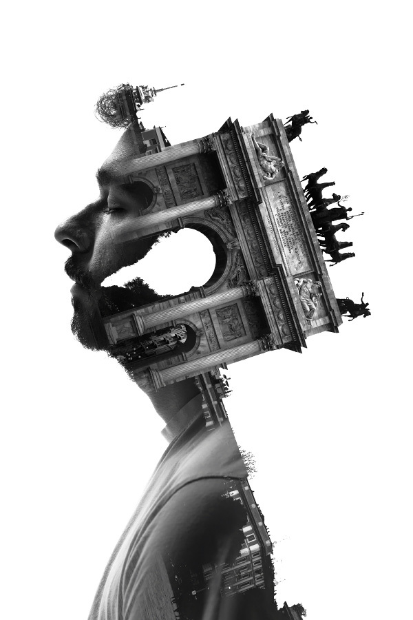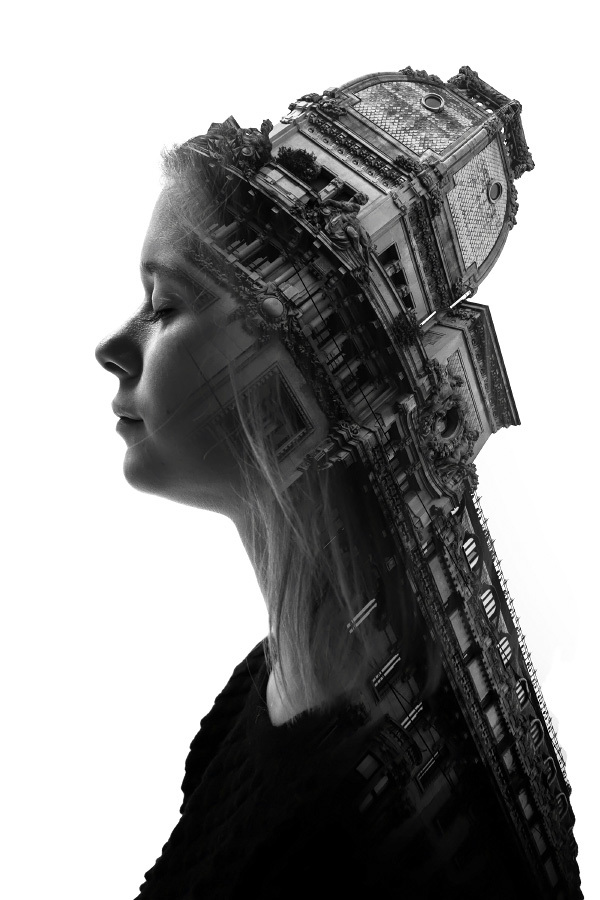 L’artiste utilise les formes des bâtiments pour créer le côté droit de l’image tout en conservant les traits du visage de chaque personne sur la gauche. Les visages sont de profils, les yeux fermés comme plongé dans un songe. L’unité entre une architecture somptueuse et les visages nous plonge dans une jolie rêverie urbaine.