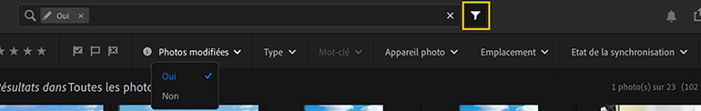Dans la version poste de travail, et sous la barre de recherche, il est possible d’afficher plus facilement les images sur lesquelles vous avez déjà travaillé grâce au nouveau filtre “Modifié”.