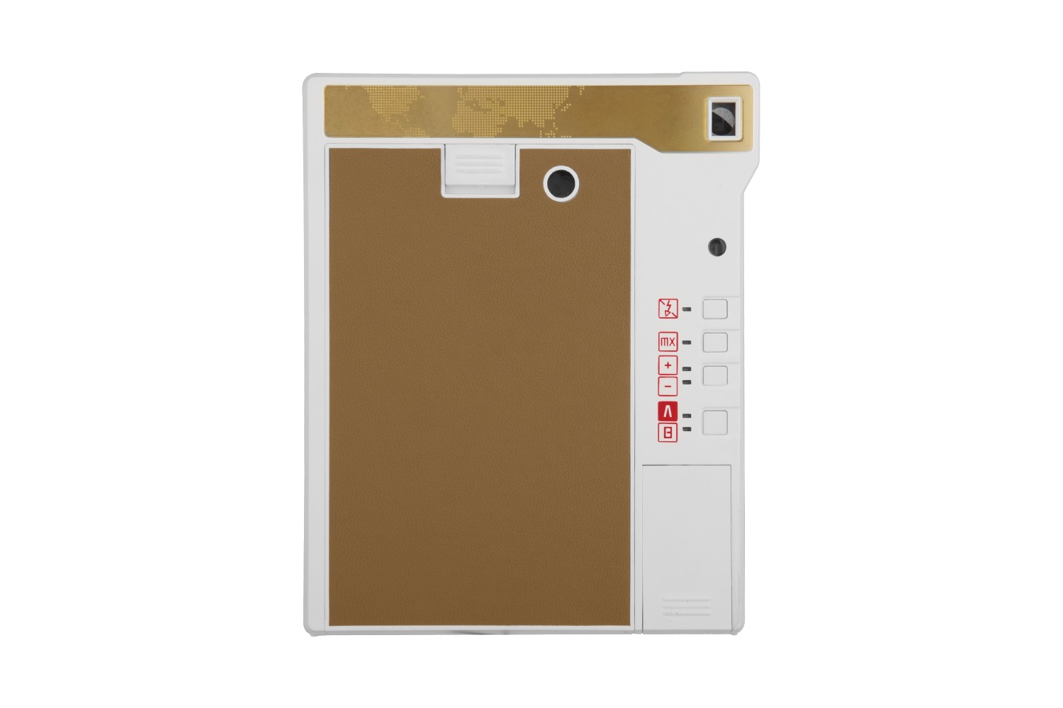Le Lomo’Instant Automat Glass Elbrus se pare d’une jolie robe brun clair, surlignée par quelques touches dorées. En outre, son capuchon d’objectif sert aussi de télécommande pour réaliser des selfies ou des photos de groupe jusqu’à une distance de 5 mètres du boîtier.