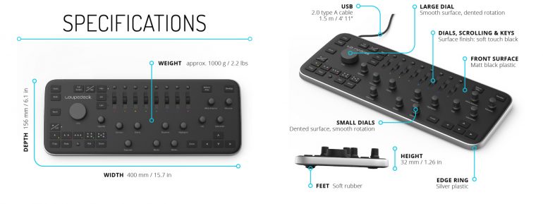 Au programme : molettes, boutons, et autres curseurs physiques permettent à l’utilisateur de Loupedeck de modifier les paramètres de son choix instantanément, de manière bien plus confortable et plus précise.