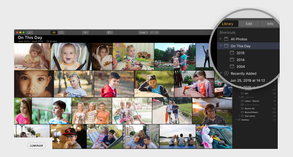 Baptisée « Ce jour-là » (« On this day » dans la version anglaise du logiciel), la première nouveauté mise en avant par Skylum nous semble plutôt anecdotique. Celle-ci consiste en l’apparition dans le menu du logiciel d’un raccourci permettant d’afficher les photos capturées à la même date les années précédentes. Selon Skylum, cette fonctionnalité « vous permettra de revivre vos souvenirs en photographie ».