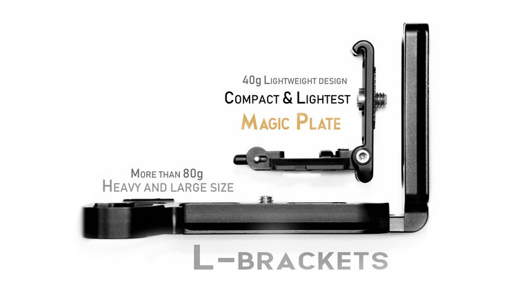 Il y a parfois des inventions qui sont des évidences, et Magic Plate en fait clairement partie. Les plateaux rapides sont très appréciés des photographes, et permettent de fixer en un instant son appareil sur trépied. Pour ceux qui ont besoin de changer régulièrement de position entre portrait au paysage, il existe aussi les fixations en L ( L brackets). Alors pourquoi ne pas réunir les deux possibilités en un seul objet ? C’est ce qu’on réussi à faire les créateurs de Magic Plate.