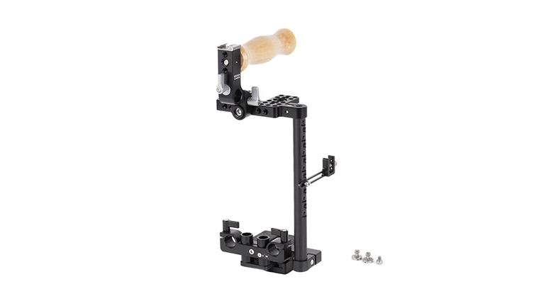Une griffe porte-accessoires et une pince tubulaire de 15 mm permettent d’utiliser les kits de fixation Wooden Camera UVF. Une pince pour câble HDMI a été ajoutée pour sécuriser les câbles vidéos.