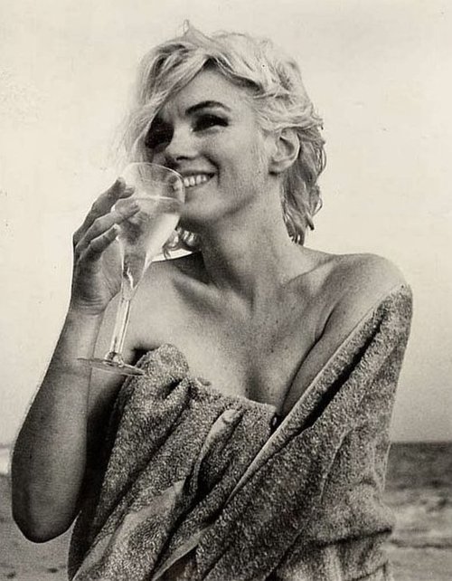 Une photo comme un instant volé. Des petites rides aux coins des yeux, un sourire naturel,  les cheveux coiffés par le vent… Enroulée dans sa serviette de bain, Marilyn resplendit de bonheur.