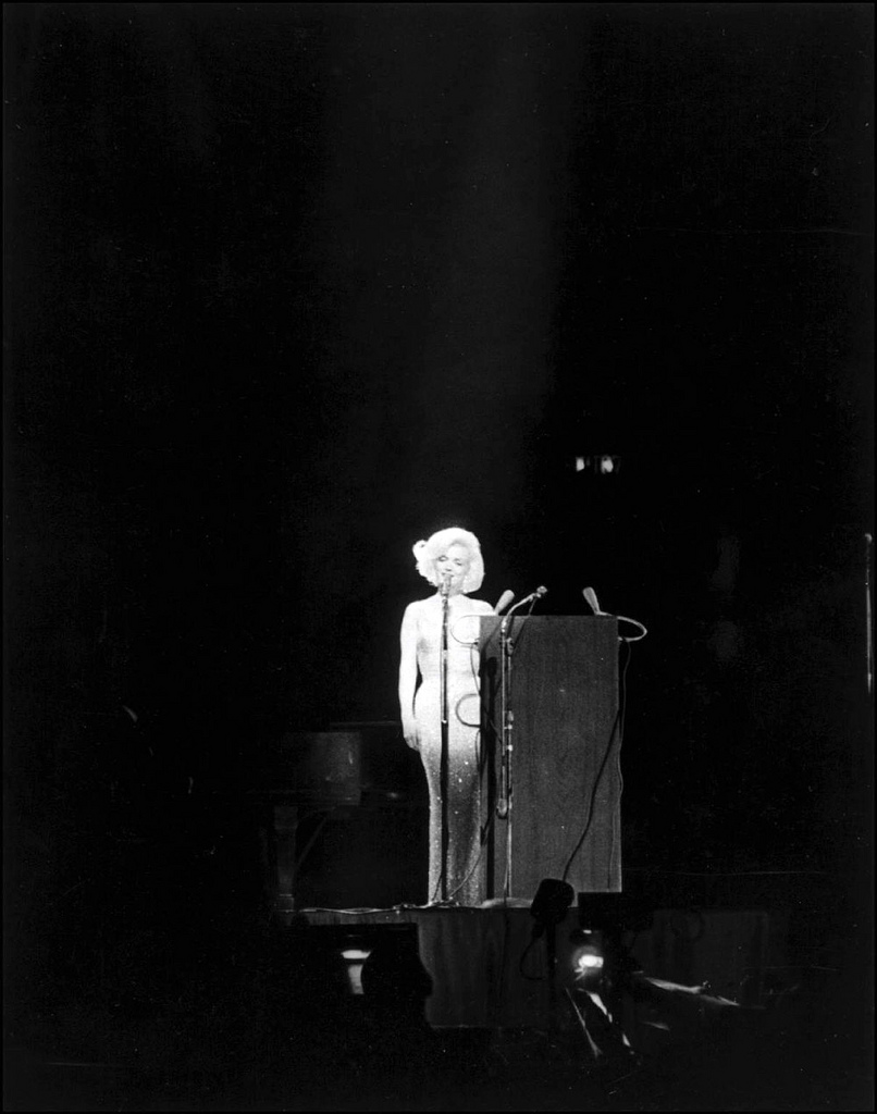 Cette image raconte tellement de choses, une époque même. Dans la pénombre, le monde assiste, médusé, à la chanson d’anniversaire la plus érotique de l’histoire. « Happy Birthday to you, Mr President », susurre Monroe à Kennedy. Ils sont alors amants, c’est un secret de polichinelle, mais elle s’en fiche. Et le chuchote au monde entier, avec son impertinence tout sourire.