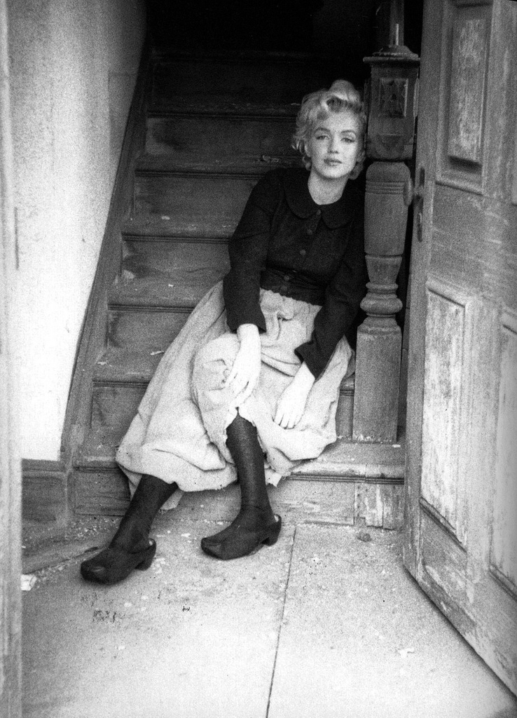 Une photo qui se détache complètement du côté glamour de Marilyn et qui est bien différente des portraits que l’on voit généralement d’elle. Le look (pantalon/soutien-gorge) est également intéressant dans la mesure où cela sort un peu de l’ordinaire, et ceci sans aller jusqu’à évoquer la célèbre robe blanche soulevée,  en photo ci-dessus !
