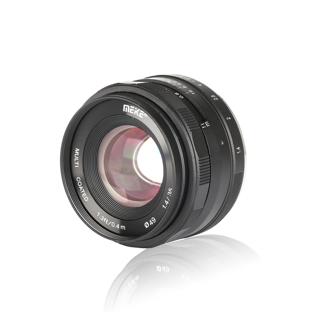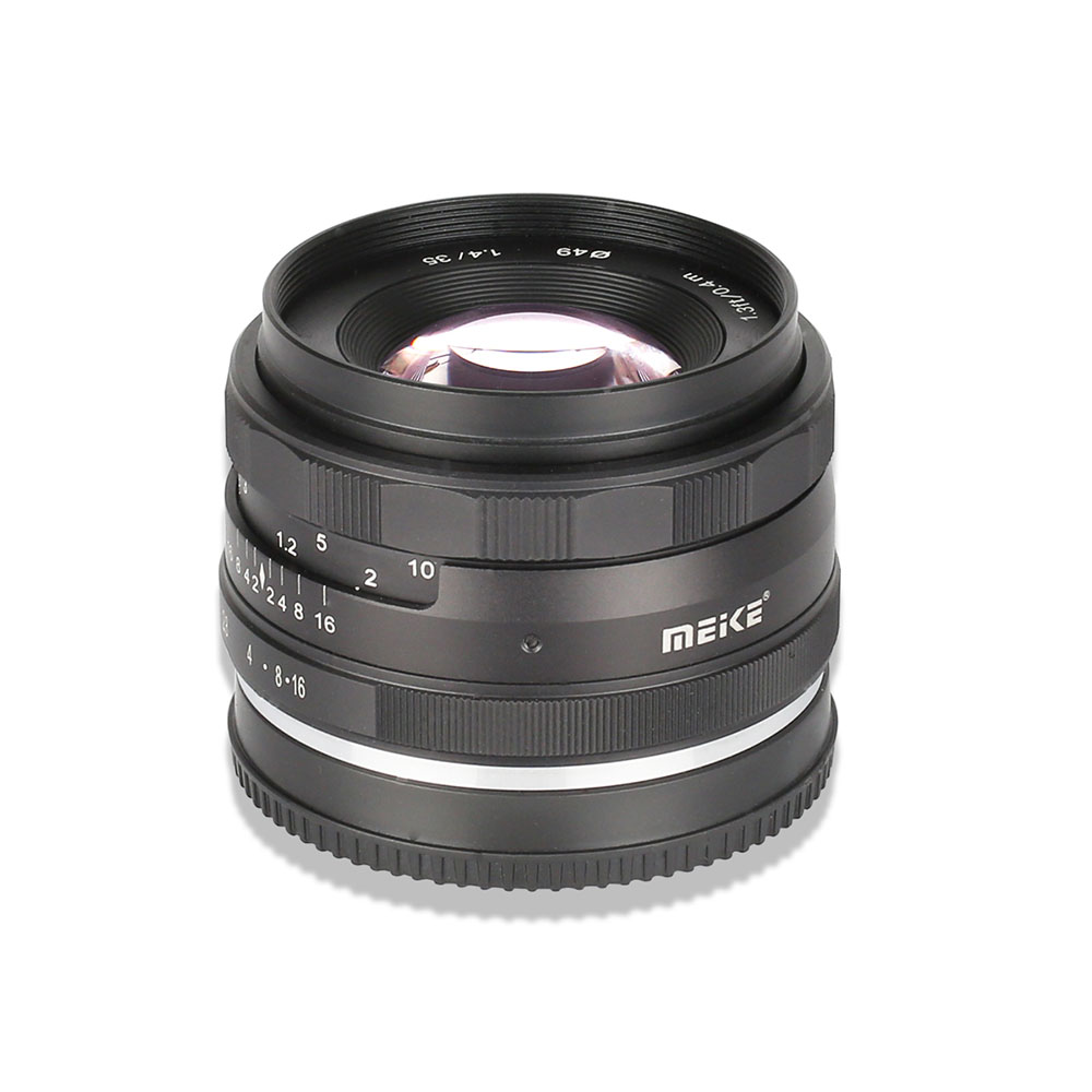 Le nouveau Meike 35 mm f/1,4 intègre un diaphragme circulaire et est conçu à partir d’une formule optique comprenant 8 éléments répartis en 5 groupes – aucune précision n’est malheureusement donnée concernant les types de lentilles et de traitements utilisés. Il autorise l’adoption d’une distance de mise au point minimale de 0,4 m et d’une ouverture de diaphragme minimale f/16. Un filetage parcourt la face avant de l’objectif et permet l’utilisation de filtres optiques de 49 mm de diamètre.