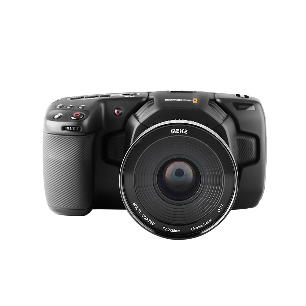 Le Meike 35 mm T2.2 est conçu pour fonctionner avec les appareils dotés d’une monture Micro 4/3. Lorsque utilisé conjointement à un tel appareil, il octroie à son utilisateur un angle de champ équivalent à celui d’un objectif 70 mm monté sur un boîtier plein format. Il se révèle donc peu polyvalent et plutôt adapté à la réalisation de plans serrés. Meike précise que la longue course de sa bague de mise au point et les indications de distance inscrites des deux côtés de l’objectif (en mètres et en pieds) facilitent la réalisation de l’opération de mise au point par un assistant opérateur.