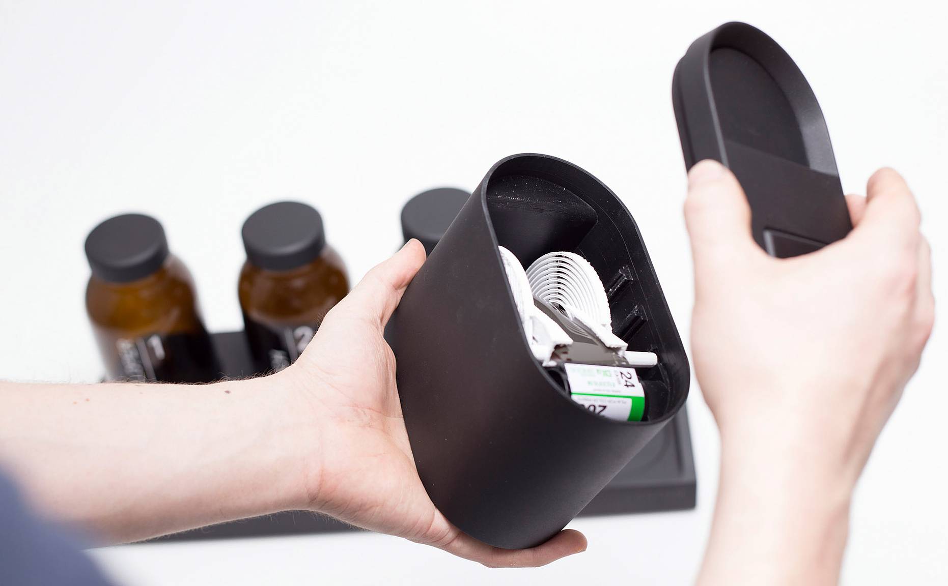 À première vue, le Kanton DX 35 ressemble à une petite table de rangement pour produits de développement sans prétention. Pourtant l’outil a été conçu pour vous permettre de développer vos pellicules 35 mm et 120 mm en noir et blanc ou en couleur, le tout sans chambre noire.
