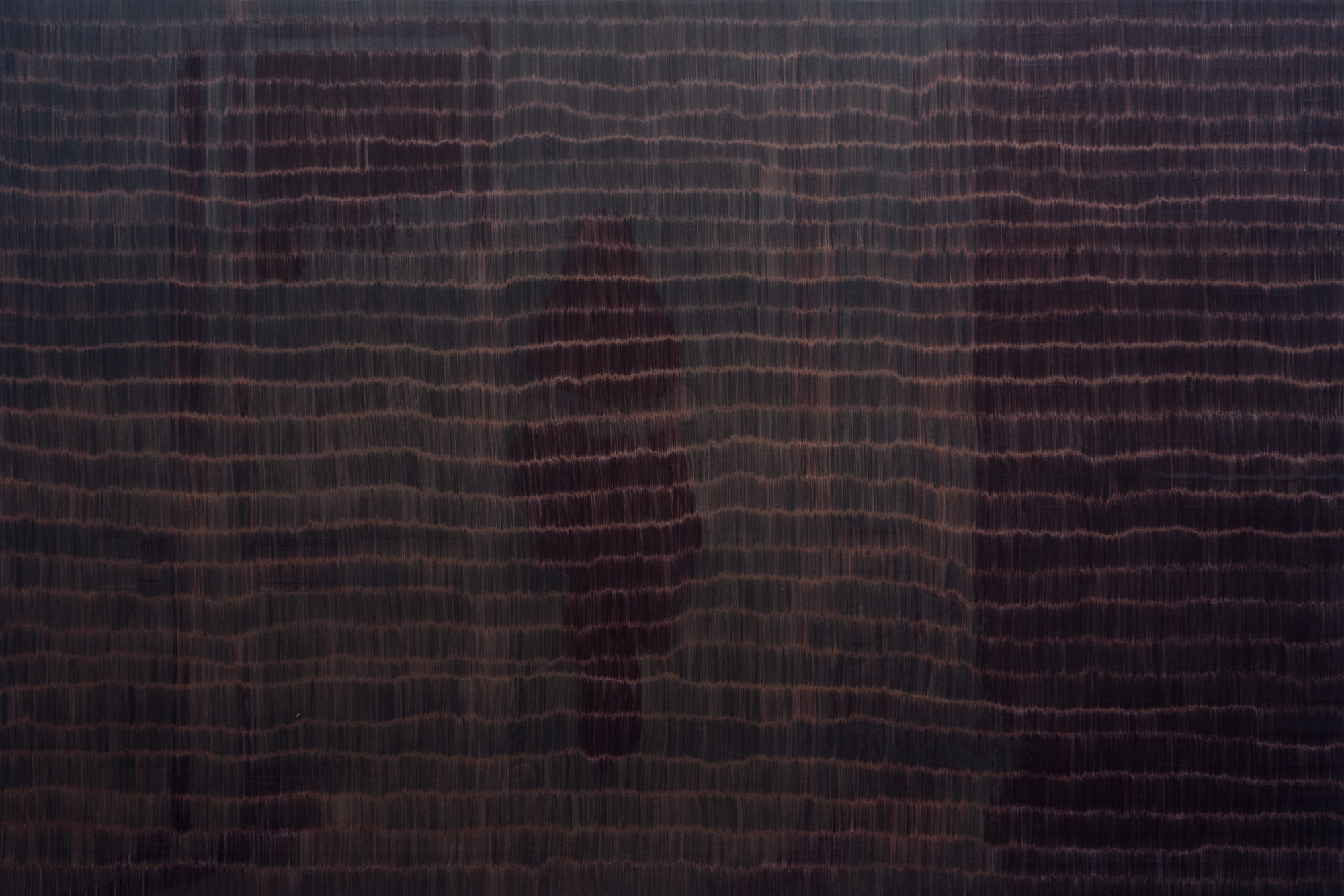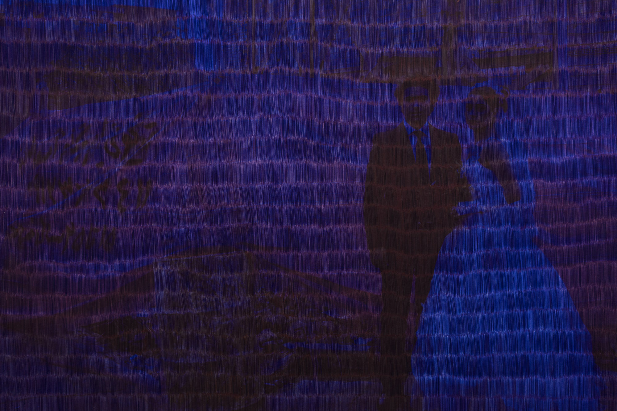 Chacune de ces sept images du passé, Morvarid K la recouvre d’une écriture abstraite, fictive, de kilomètres d’encre. Comme une biffure minutieuse, froide, systématique, acharnée et obsessionnelle. Il y a naturellement une dimension performative dans ce travail qui convoque des figures du Butoh, comme Yuko Kaseki avec laquelle Morvarid K collabore. De cette danse émane une tension car, de la souffrance, de l’obsession, de la douleur, de l’animalité, de la laideur, naît la beauté.