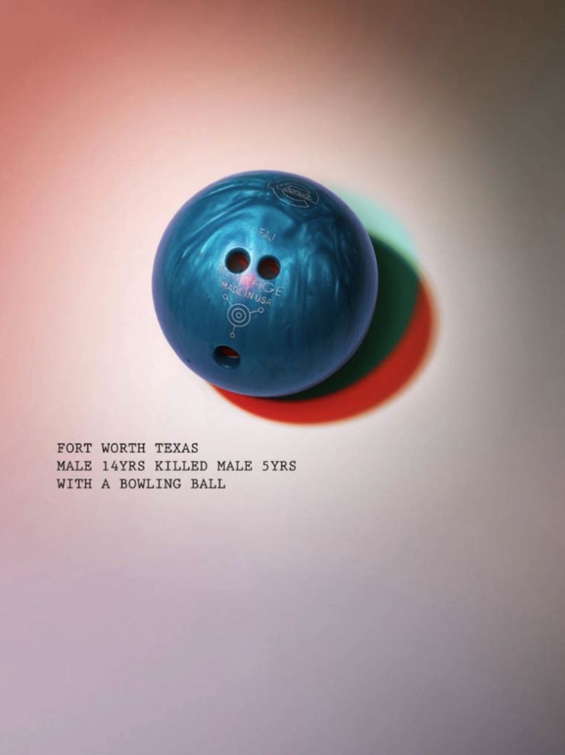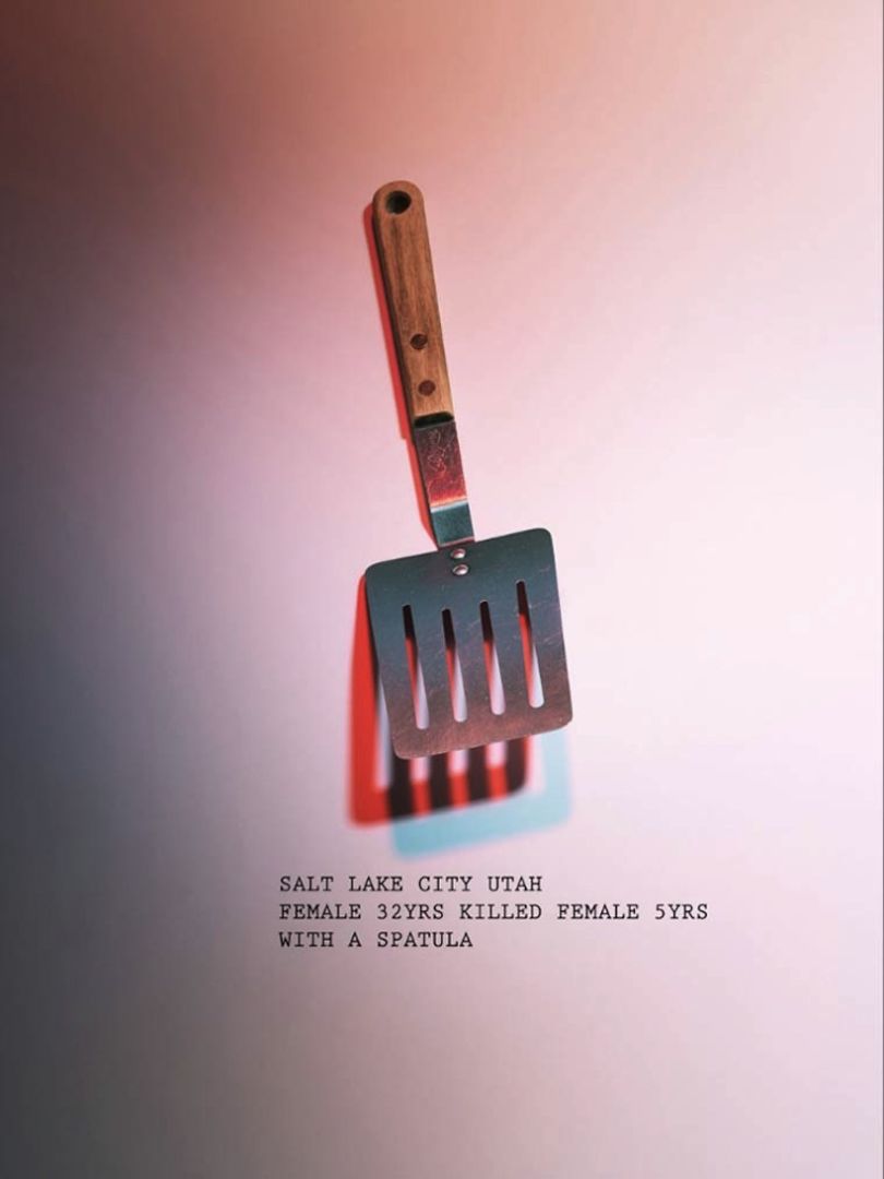Dans sa série Murder Weapons, Ed James a photographié des armes incongrues utilisées pour commettre un crime. Insignifiants pour la plupart, ces objets du quotidien sont sortis de leur contexte avec pour seule compagnie, et en légende, l’âge du meurtrier et de la victime. Une série à la fois intrigante et dérangeante.