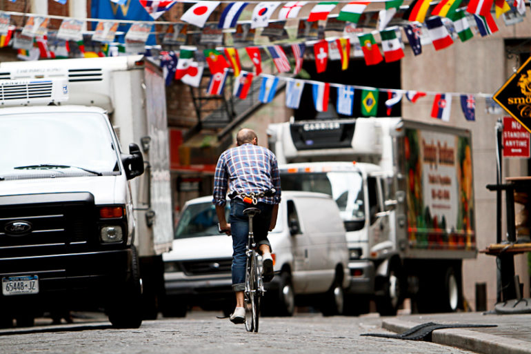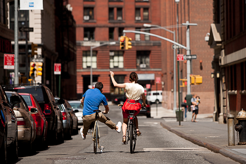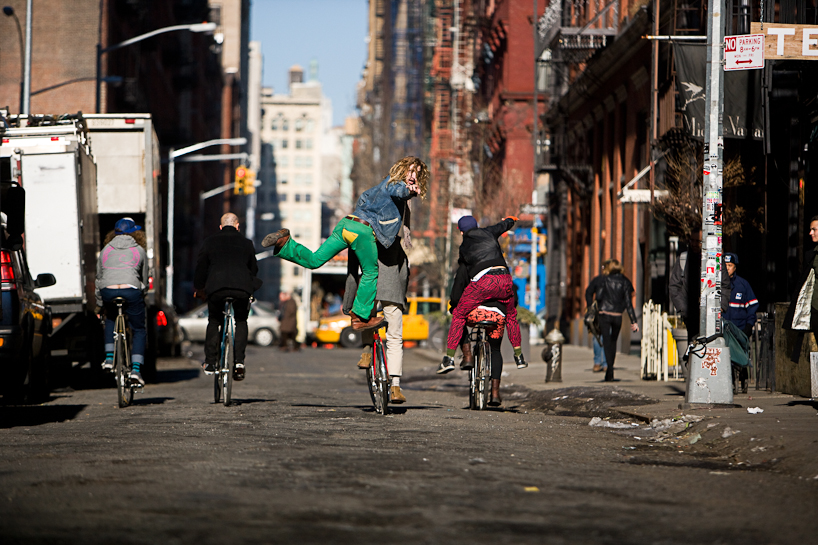 Les haters vont hater… Car ce joli projet photo de Bridget Fleming réunit une véritable nuage de mots-clefs de la hype. Se déroulant New York, dans Manhattan, particulièrement ses quartiers Sud (Soho, East Village, Tribeca, Nolita…) cette série met en scène des créatifs, architectes, start uppers et peoples des environs, sur leur vélo – souvent des fixies. On ne pouvait pas faire plus !