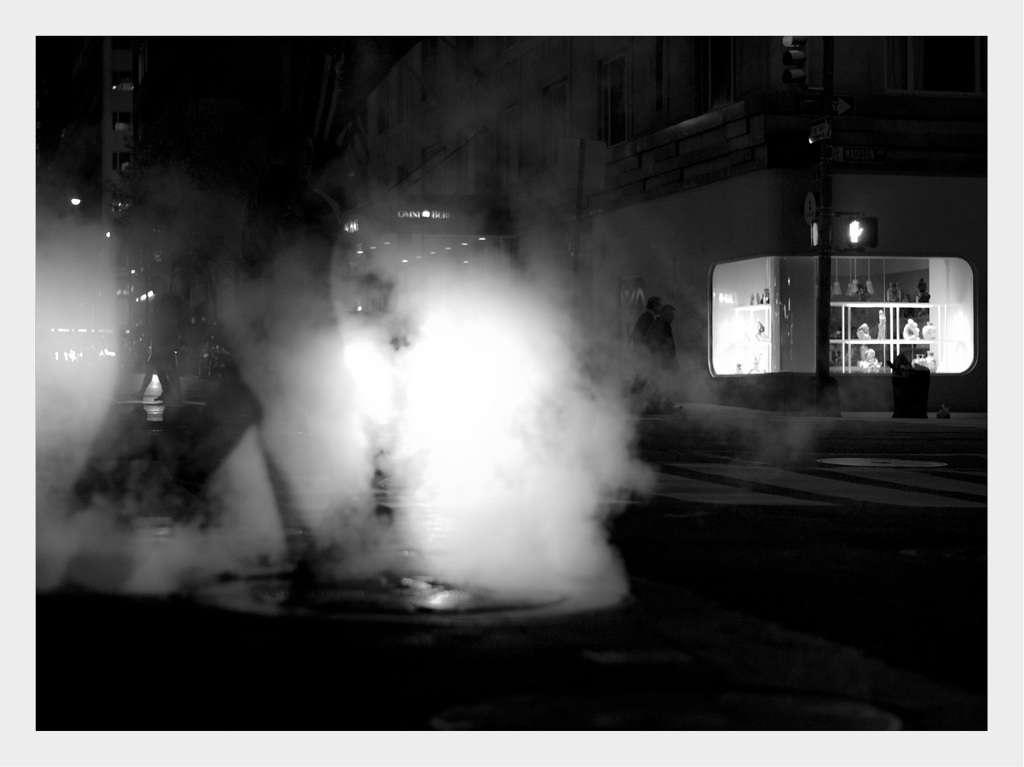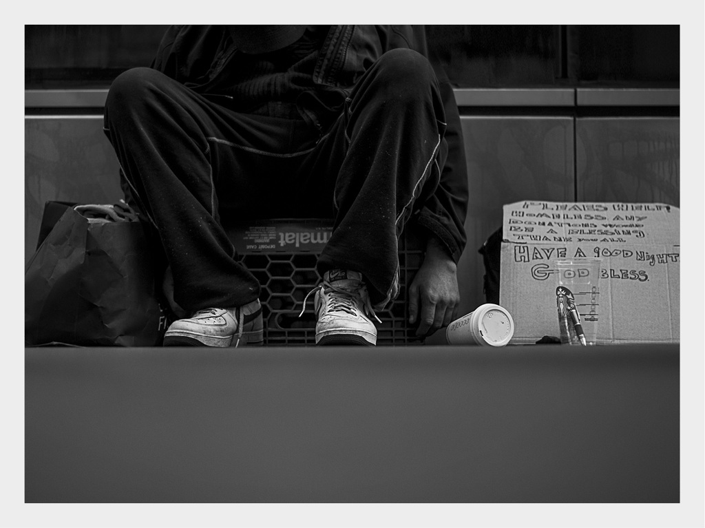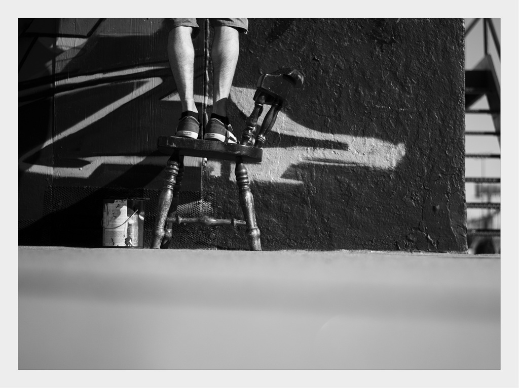 Il a donc posé son appareil au sol. Grâce à cette belle série noir&blanc, il donne à voir une ville qui fourmille aux pieds des immeubles.