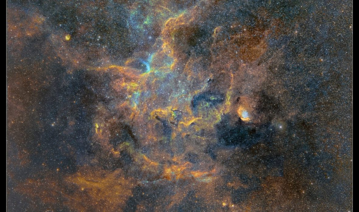 « Mon processus de traitement est très constant, de sorte que très peu d’ajustements ont été nécessaires entre les images de la mosaïque. Certaines images ont un temps d’exposition plus long que d’autres. Certains objets très peu lumineux sont clairement visibles dans cette composition, comme le reste de la supernova W63, le Cygnus Shell. Il se trouve à environ six degrés de la nébuleuse North America et peut être vu comme un anneau bleu pâle. J’ai consacré environ 100 heures à cette seule prise de vue » écrit le talentueux photographe sur son blog.