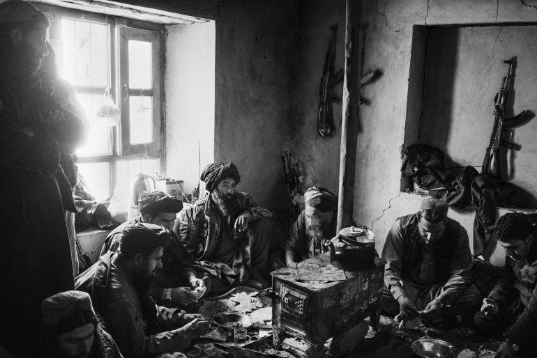 NANGARHAR PROVINCE, AFGHANISTAN – DECEMBER 11: A group of Taliban fighters have lunch in a hide out in a remote part of Khogiani district. (Photo by Lorenzo Tugnoli/The Washington Post/Contrasto)