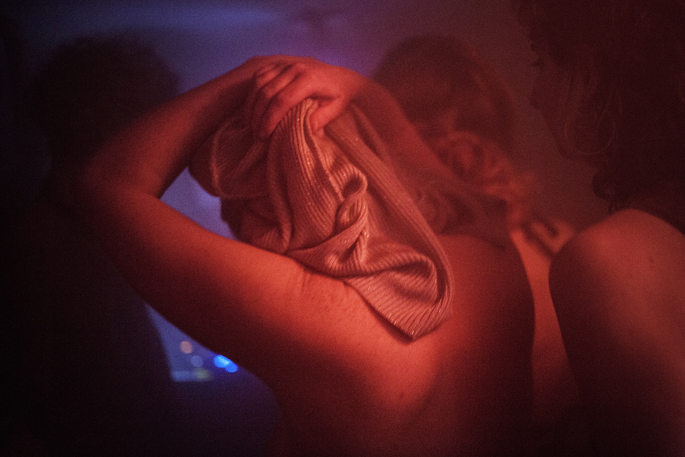 série Abandon, publiée dans plusieurs magazines a été sélectionnée pour le Prix Virginia 2018 qui récompense une femme photographe. Pour le MAP, elle propose une série consacrée à la fête, et particulièrement aux fêtes clandestines pendant le Covid-19. La fête serait-elle redevenue ce qu’elle était à l’origine : un exorcisme spirituel libératoire qui oppose au temps du jour, du labeur, de l’ennui, de la mort, celui de la nuit, et donc de la vie. Un contrepoint séduisant dans un monde plutôt habitué à l’hyper festivité… lorsqu’on fantasme, faute de mieux, la fête dans la permanence du quotidien. Et si, en restaurant la frontière entre temps festifs et non-festifs, le Covid-19 était en train de sauver la fête ?