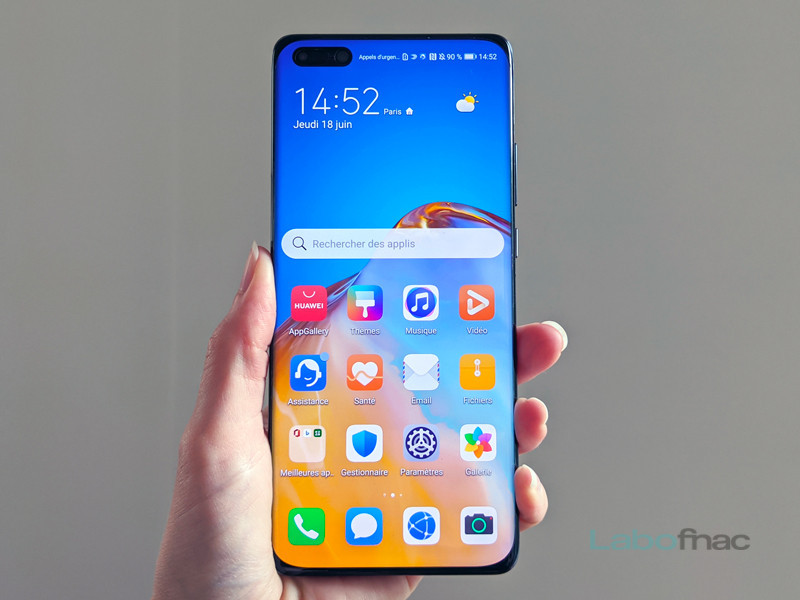 Si vous connaissez déjà le P40 Pro, le P40 Pro+ s’en écarte bien peu à première vue, puisque la quasi intégralité de sa fiche technique est identique. Il présente donc un écran de 6,58 pouces affichant 2640 x 1200 pixels. Cette dalle OLED bénéficie d’un taux de rafraîchissement de 90 Hz, un minimum compte tenu de son positionnement, et supporte la norme HDR10. Cet écran est percé de deux encoches dédiées à un capteur photo de 32 Mpx et à un capteur de profondeur. Il cache un hardware incluant une puce Kirin 990 5G, 8 Go de mémoire vive, 512 Go de stockage et une batterie de 4200 mAh. Nous y reviendrons plus loin, mais c’est par son quadruple module photo dorsal composé d’un capteur principal de 50 Mpx, d’un second de 8 Mpx avec un objectif équivalent à 240 mm, d’un autre de 8 Mpx également avec un équivalent 80 mm et enfin un dernier, dédié à l’ultra-grand-angle, de 40 Mpx que le P40 Pro+ se démarque. Le tout est équipé du système d’exploitation Android 10 dans sa version open source habillée de l’interface Emotion UI, avec les HMS (Huawei Mobile Services) en lieu et place des services Google.