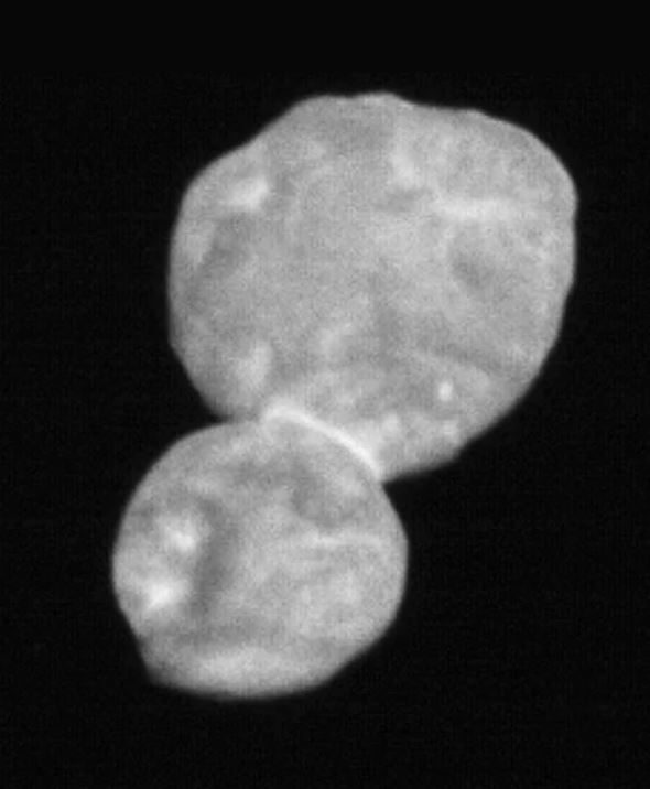 Ultima Thule est l’astre le plus loin qu’un objet terrestre ait jamais visité. Ci-haut, l’image originale, la première, à laquelle ont suivi les images ci-bas dans les jours successifs, dévoilant l’aspect de cet amas rocheux de 34km de long désormais appelé le Kuiper Belt Object (KBO).