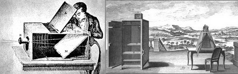 En partant du principe qu’on désire « enregistrer » l’image qui se forme à l’intérieur de la boite, la solution est de faire en sorte que la surface sur laquelle se forme l’image soit sensible à la lumière… Avec ses expérimentations Joseph Nicéphore Niepce est le premier à avoir réussit à prendre une photographie en utilisant une émulsion photosensible à base de bitume de Judée qui durcit à la lumière (comme votre peau qui brunit au soleil sauf à l’endroit ou est votre montre ou votre alliance). Les débuts de la photographie sont d’ailleurs assez hasardeux et de nombreux intervenants ont tentés de s’aproprier la paternité de la photographie. Si cela vous intéresse, vous pouvez lire la « Petite histoire de la photographie » par W. Benjamin et «The quest of Joseph Hamel to find the real inventor of Photography» par S. Plantureux.