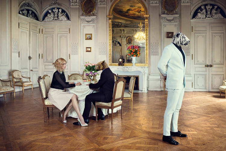 « Pour donner à voir cette vérité, je me suis inspiré d’un univers qui rappellera à certains d’entre vous celui des contes et de l’œuvre de Jean Cocteau. Ne sommes-nous pas en fait tous des animaux indomptables à la fois poétiques et politiques, tour à tour proies et prédateurs dans une jungle civilisée ? » explique le photographe.