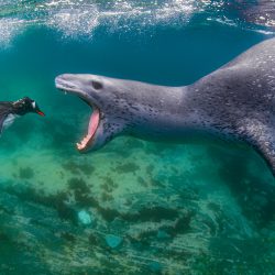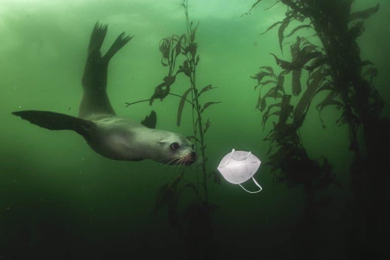 Autre photo gagnante dans la catégorie underwater est celle de Ralph Pace, qui a photographié une otarie jouant avec un masque chirurgical. Un emblème du monde post-pandémie, avec ses contradictions et ses dangers. Les cicatrices du Covid-19 resteront visibles pendant des années, y compris sur notre environnement comme le prouve ce cliché : selon une étude, 129 milliards de masques et 65 milliards de gants ont été utilisés chaque mois dans le monde pendant la pandémie, et 75 % d’entre eux ont probablement fini dans des décharges ou dans l’océan. Ce matériel non biodégradable déstabilise ultérieurement la faune et la flore marines. De quoi nous faire réfléchir : notre santé doit être préservée…en compagnie de celle des autres êtres vivants, au risque de se retrouver dans un monde en pire état qu’avant la pandémie.