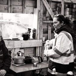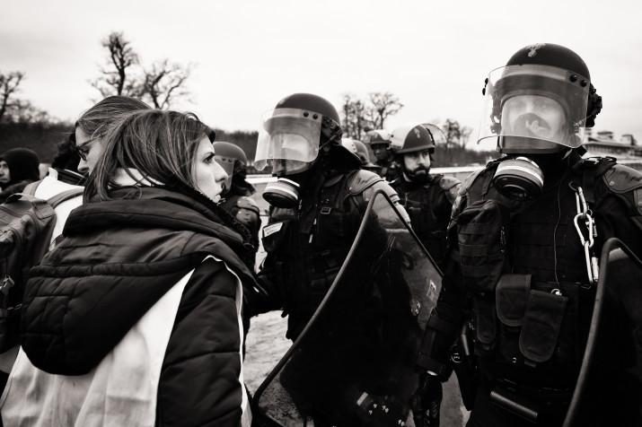 Les images rigoureusement en noir et blanc s’éloignent des clichés publiés par la presse d’actualité, en assumant un air intemporel qui fuit tout sensationnalisme. Les Gilets Jaunes posent fièrement, en affichant une volonté de transmettre leur esprit de résistance, de traduire les sentiments de « ceux qui relèvent la tête pour dire non à ce monde », comme le dit le photographe. Des images qui illustrent la force du combat collectif, tandis que le texte permet de comprendre la durée et l’ampleur de la révolte : le rôle déterminant des femmes, la façon dont les groupes tentent de neutraliser leurs divisions, les attitudes face à la répression policière, ou encore les manières d’entretenir la fraternité et la croyance en « un autre monde possible ».