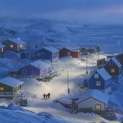 Le Grand Prix de 7500 dollars a été attribué à Weimin Chu pour sa superbe image de l’Hiver au Groenland, représentant un village de pêcheurs à Upernavik. Le cliché dévoile un monde enchanté fait de petites demeures colorées enveloppées de brouillard et de neige. « C’était tellement harmonieux. Toute la terre était recouverte de neige blanche et froide, et la teinte bleue du crépuscule la rendait encore plus fraîche. Mais la lumière des fenêtres, les réverbères et cette famille de trois personnes ont réchauffé le monde » rapporte le photographe. « J’aime le contraste et l’ambiance de cette scène. J’étais occupé à prendre des photos en continu à ce moment-là, essayant de capturer le meilleur moment. »