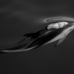 Autre cliché magnifique dans cette catégorie, celui de Scott Portelli (en couverture de cet article) représentant un dauphin noir se déplaçant dans la région des canyons de Kaikoura, en Nouvelle-Zélande, à la recherche de nourriture. Le photographe raconte : « Les dauphins noirs sont rapides et suivent souvent le rythme d’un bateau à grande vitesse. J’ai attendu sur la proue du bateau lorsque le dauphin sombre a presque percé la surface. Leur élégance et leurs corps profilés sont conçus pour la vitesse et la maniabilité, accentués par l’eau douce et claire du littoral néo-zélandais. »