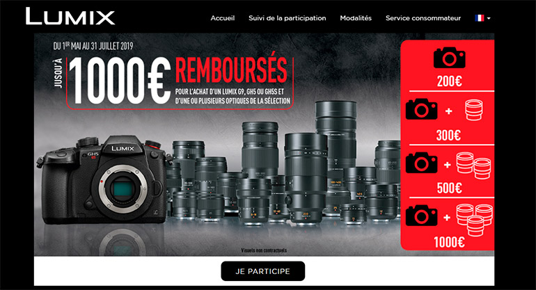 La liste des offres spéciales pour l’été commence à être conséquente. On trouve des offres chez Canon, Nikon, Sony, Fujifilm, Pentax, ainsi donc que Panasonic. La marque propose deux offres de remboursement jusqu’au 31 juillet inclus. La première concerne les boîtiers micro 4/3 Lumix G9, GH5 et GH5S, la seconde des compacts et bridges Lumix à capteur 1 pouce. De plus, la mise à jour payante Vlog pour le Panasonic S1 est offerte jusqu’au 30 septembre.