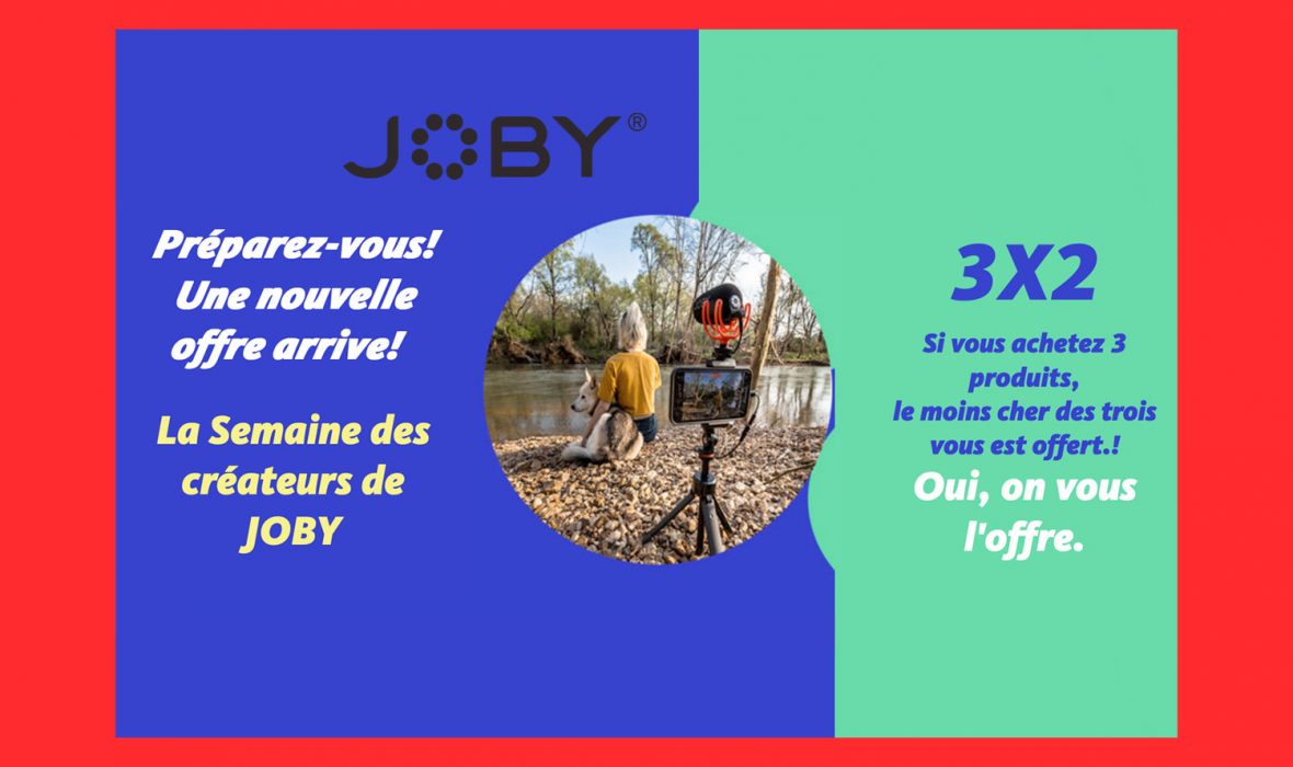 Depuis le 02 novembre 2020, et ce jusqu’au 30, Joby (qui appartien au groupe Vitec) vous incite a acheté trois produits. Le constructeur vous offre alors le moins onéreux des trois. Une offre 3×2 dans le cadre de ce que la société à décidé d’appeler « le mois des créateurs ».