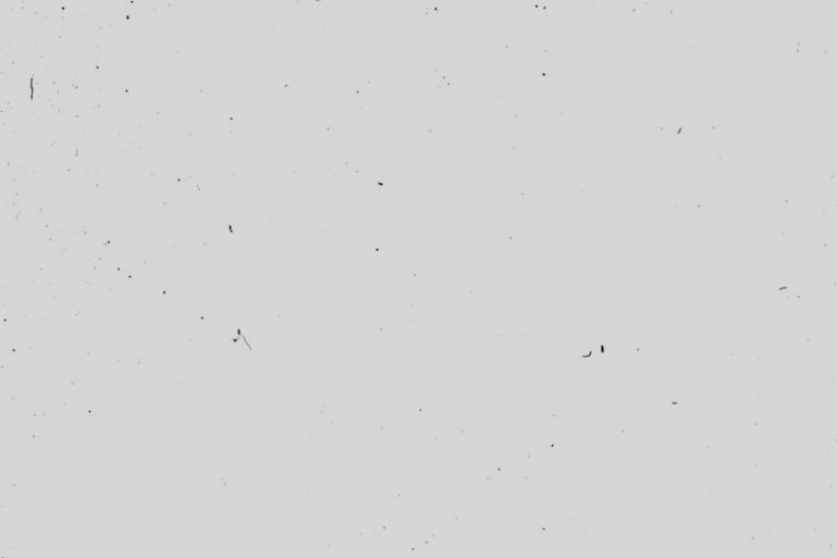 Montage photoshop cumulant les 20 capteurs des D600 de Lens Rental. Seules sont visibles les plus grosses poussières. (image : Lens Rental)