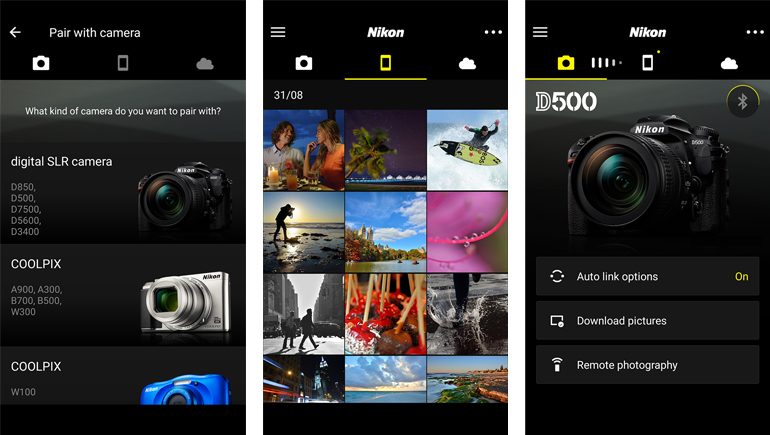SnapBridge est l’application de Nikon qui permet à ses utilisateurs de contrôler à distance son appareil photo en Bluetooth et Wi-Fi, ainsi que de transférer et partager ses photos. Elle est compatible avec les boîtiers Nikon D850, D500, D7500, D5600, D3400,COOLPIX A900, A300, B700, B500, W100, W300, et KeyMission 80.