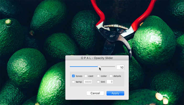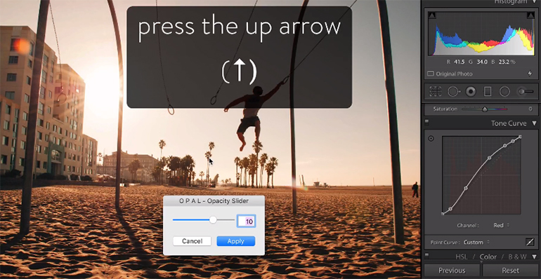 Opal, la contraction de opacity et Lightroom est un plugin qui apporte une fonctionnalité qui manque cruellement au logiciel d’Adobe. Il permet de régler l’opacité de vos paramètres prédéfinis (presets) avec un simple curseur, et même de choisir quels paramètres seront affectés.