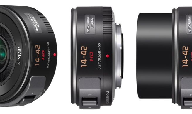 Mais la cerise sur le gateau, c’est la taille ahurissante de cette optique : Avec 25,6mm de long pour 95 grammes, le 14-42 est à peine plus gros que le 20mm f/1.7 pancake ! Une fois déployé à la manière du 14-42mm d’Olympus (mais de manière bien plus spectaculaire), il gagne beaucoup en longueur, mais c’est alors moins important, puisque vous utilisez l’appareil hors de son rangement..